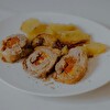 Arrosto di maiale ripieno di formaggio e verdure con contorno