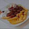 Polpetta, manzo/agnello con tzatziki, feta, pomodori, cetrioli, patate fritte e cipolle