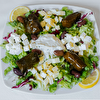 Insalata con pomodoro, cetrioli, uovo, salsa con maionese e kefalotiri